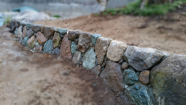 且つ、現地にある石も細工等を施しながら石積みに再利用が可能という点も長所の一つです。